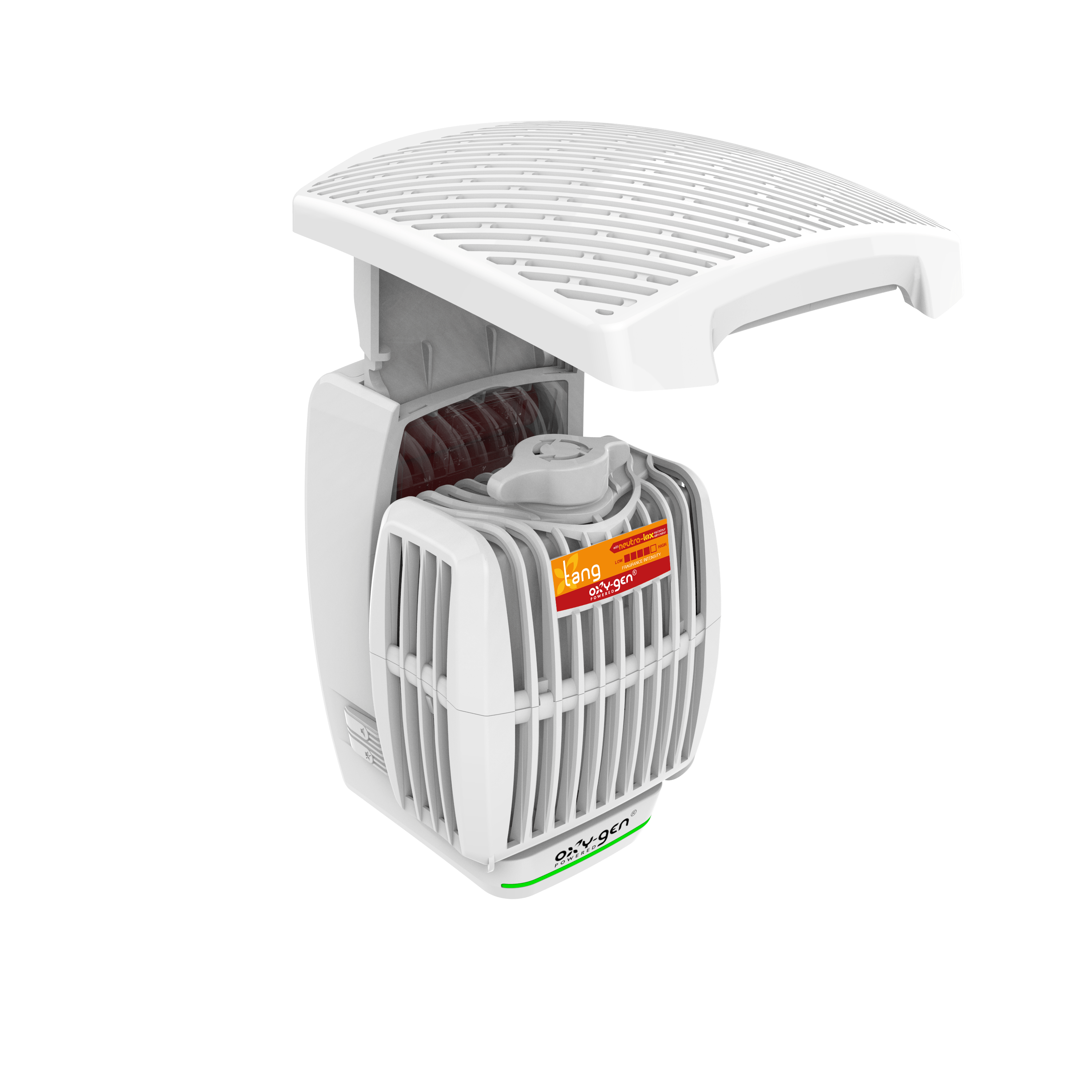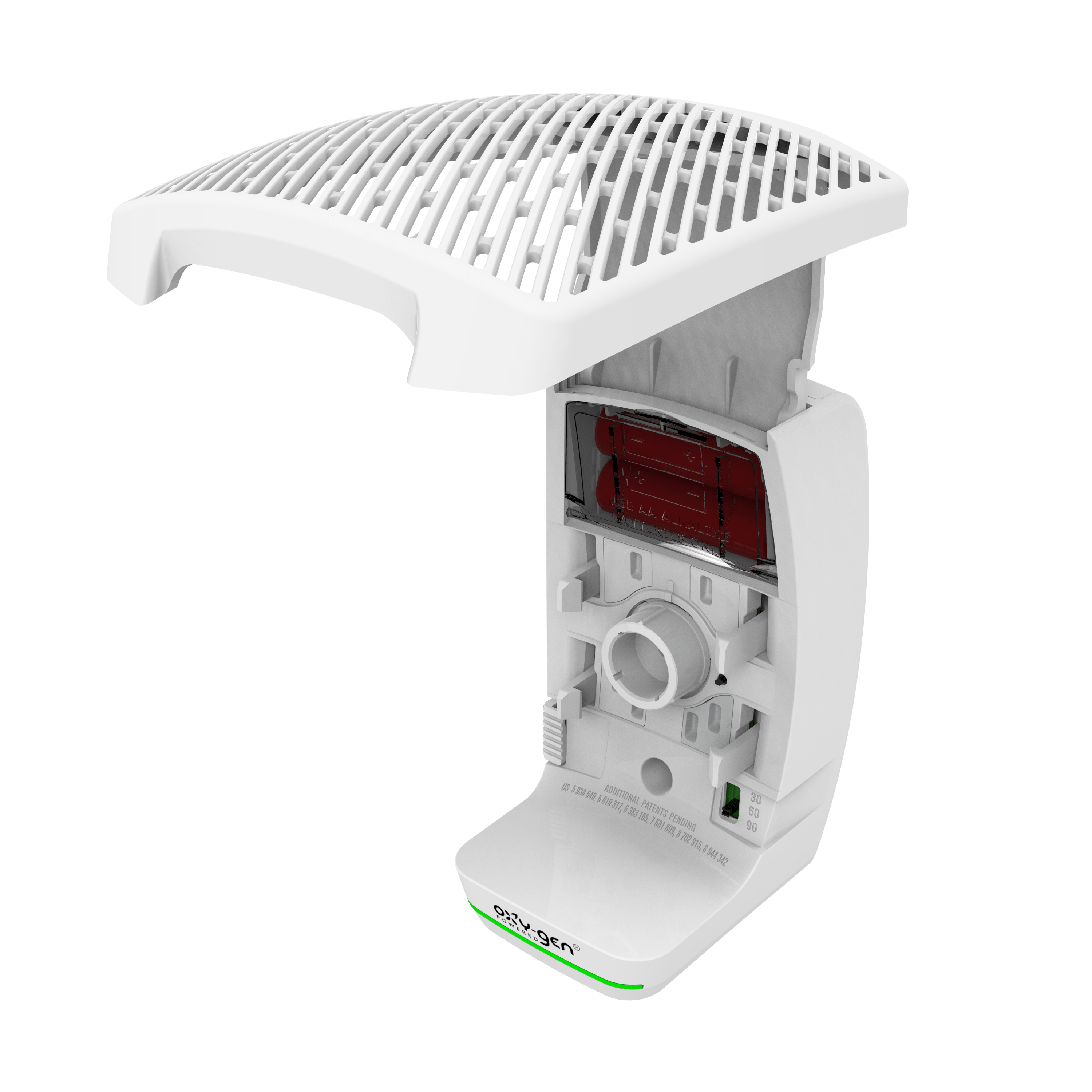Der batteriebetriebene Sauerstoffgenerator erzeugt aus einem 100% natürlichem Parfumöl einen kontinuierlichen Duft über einen wählbaren Zeitraum von 30-90 Tagen.